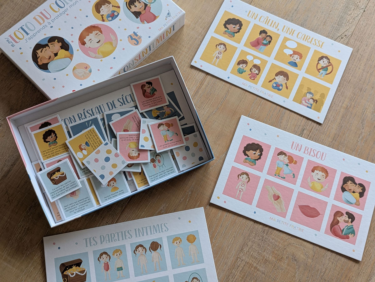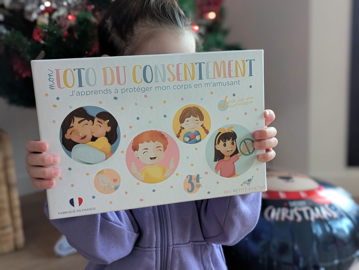 On va être honnêtes : si on m’avait dit un jour qu’un loto allait m’aider à parler de consentement avec un enfant de 4 ans, j’aurais probablement levé les yeux au ciel, soupiré un truc du style « mhm sûr », et repris ma vie tranquillement.